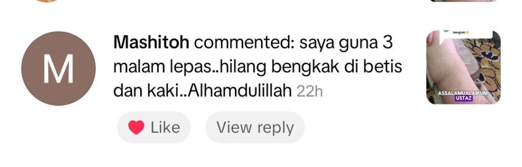 “Alhamdulillah sakit lutut dah kurang selepas amalkan SureRelief ni 2 malam..”